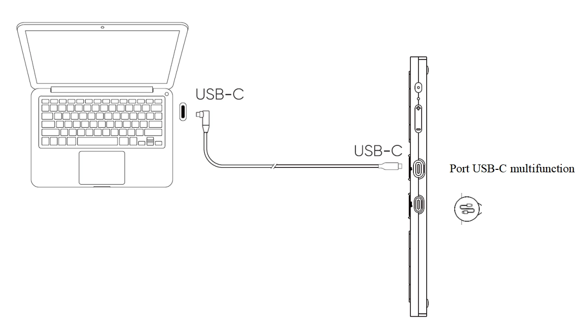 2. Branchez une extrémité du câble USB-C vers USB-C dans le port USB-C multifonction marqué sur la tablette graphique avec écran ;