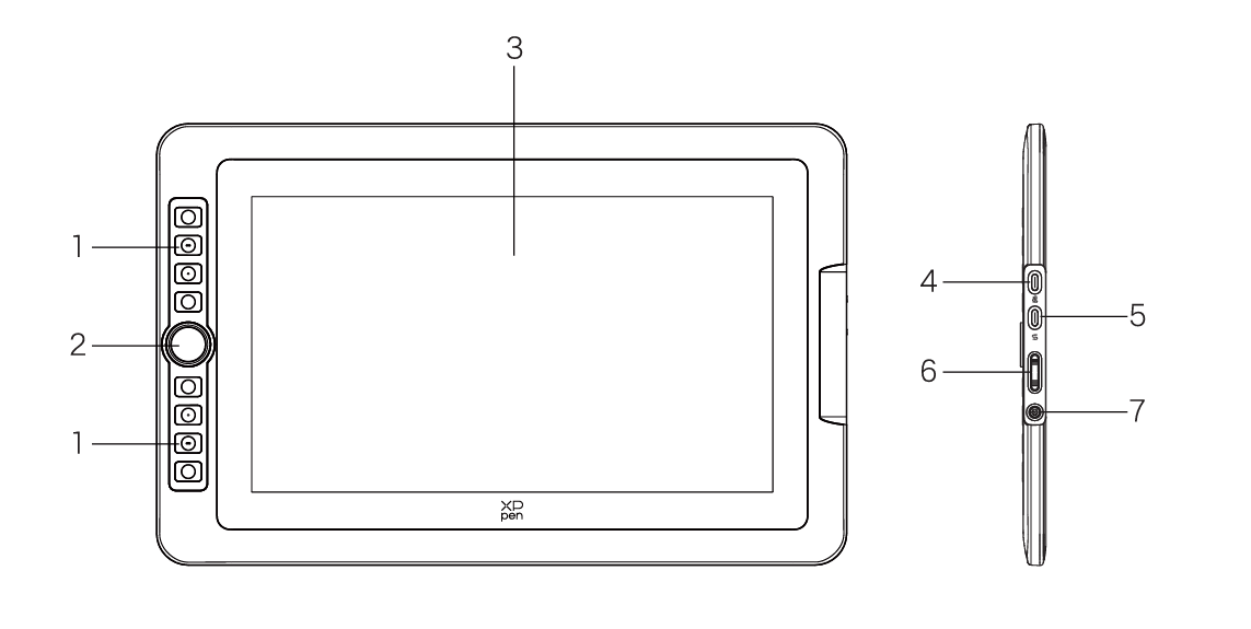 1) Connectez l'ordinateur à la tablette graphique avec écran via le câble USB-C.