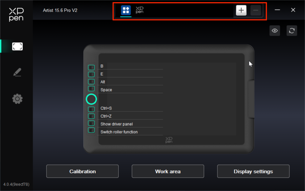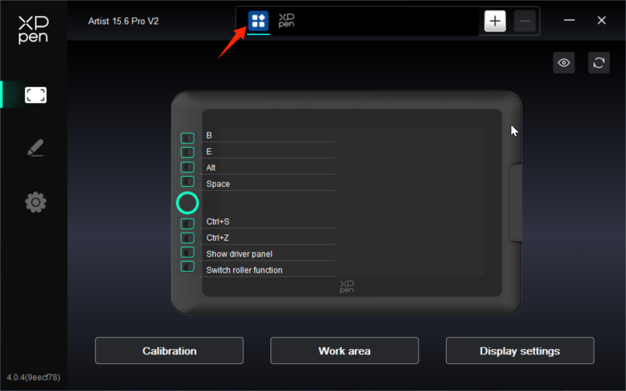 1. Cliquez sur les icônes de la barre de menu de gauche pour passer d'une fonction à l'autre. De haut en bas, il s'agit de Paramètres de l'appareil, Paramètres du stylet et Paramètres du pilote.