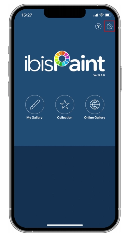 1. Connectez la Tablette graphique XPPen. Ouvrez ibis Paint et cliquez sur « Paramètres ».