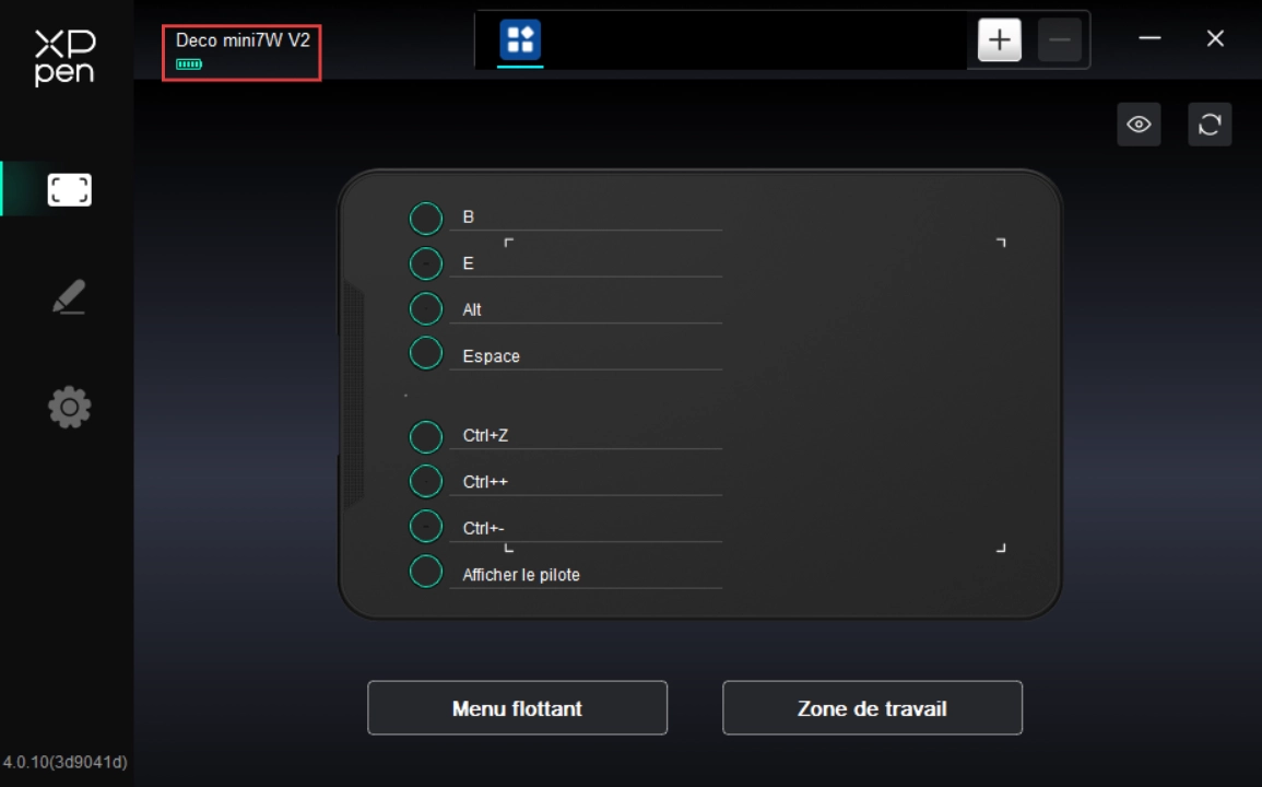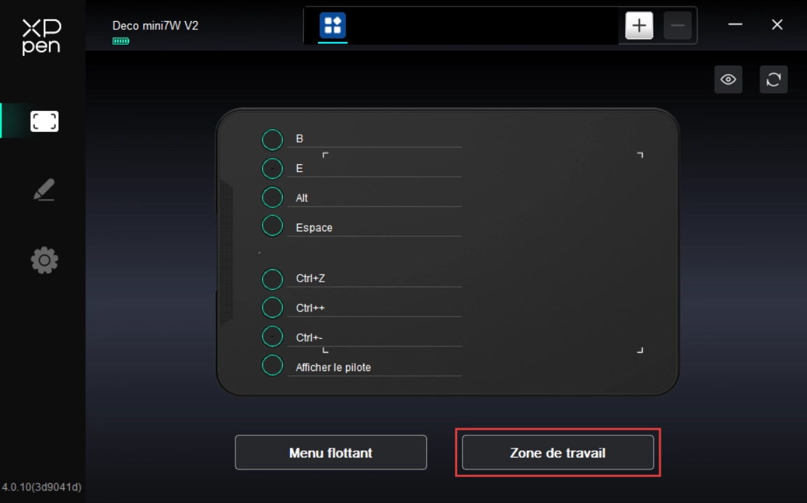 Les touches de raccourci et la molette de la tablette graphique sont temporairement indisponibles. Les paramètres du pilote sont temporairement indisponibles, de sorte que la zone de mapping ne peut pas être personnalisée.