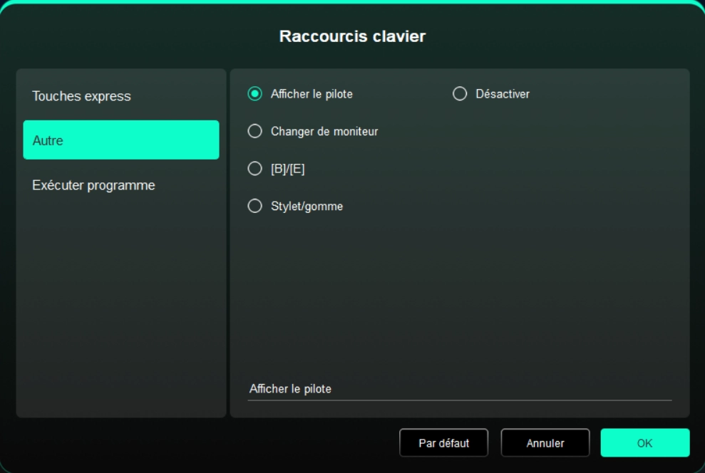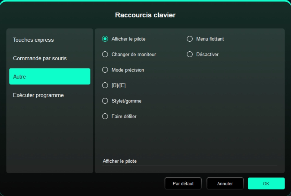 1. Définissez les fonctions correspondant aux touches du stylet.